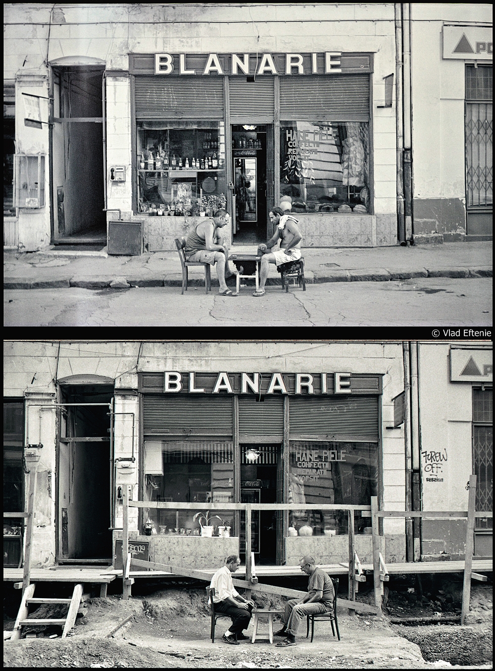 O altă observaţie aduce cu sine chiar încercarea de a explica un paradox specific bucureştean. Oraşul nu îşi păstrează urmele, înlocuindu-se pe sine cu aproape fiecare nouă zi. Pe lângă mutilarea din epoca socialistă, prezentul aduce cu sine specia speculanţilor imobiliari care schimbă faţa oraşului într-un ritm ameţitor. Oraşul ajunge să-şi piardă urma în propriul praf. Rămân însă oamenii, acele prezenţe discrete dar atăt de deschise a povesti oraşul care “a fost”. Si atunci iţi dai seama că Bucureştiul cotrazice însuşi proverbul “apa trece, pietrele rămân”, întrucăt pietrele îşi pot schimba consistenţa de la zi la zi în timp ce memoria rămâne singurul spaţiu care cimentează cu adevărat ceea ce a fost, ce a devenit oraşul. Şi atunci te apropii de oameni conştient că oraşul sălăşluieşte înlăuntru, conştientizezi că, apropiindu-te de oameni, te apropii de oraşul care rămâne, care continuă prin oamenii care îl povestesc. Cu atât mai important se conturează rolul fotografului, acela de a crea “conserve” de timp ale unui oraş care se petrece,  care se transformă, care devine.