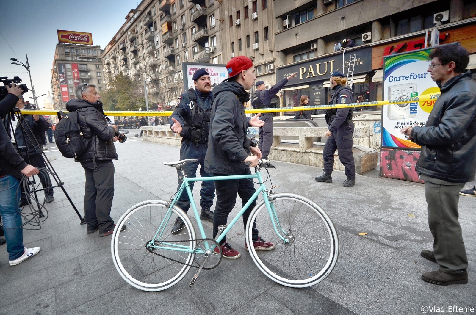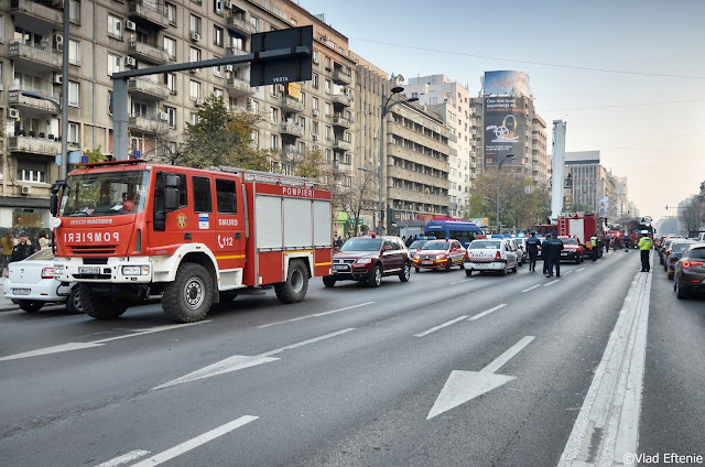 Astazi 06-11-2015, in jurul orelor 17, a avut loc la Piata Romana – KFC un incendiu. Nu au fost urmari grave. Dispozitivul pompierilor a fost impresionant, nu s-au putut apropia insa de fatada cladirii din cauza bolarzilor – bilele care mobileaza spatiul public. Intamplator am avut aparatul cu mine si am relatat de la fata locului.